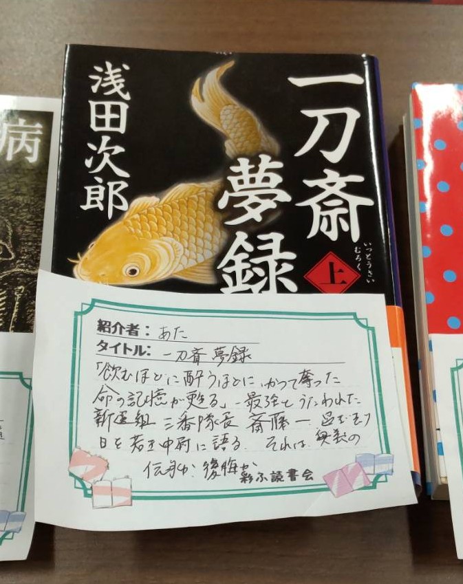 一刀斎、逆から読むと斎刀一!なるほどー!と思わず唸りました(言われるまで気付かなかった)最強と謳われた新選組三番隊長・斎藤一が、明治の世で若き中尉に語る過ぎ去りし日々の記憶。一人の剣客が生きた壮絶な人生の重みが、ページをめくるごとに伝わってきそうです。壬生義士伝から始まる「新選組」3部作の完結篇!素敵な推し本紹介、ありがとうございます(^^)